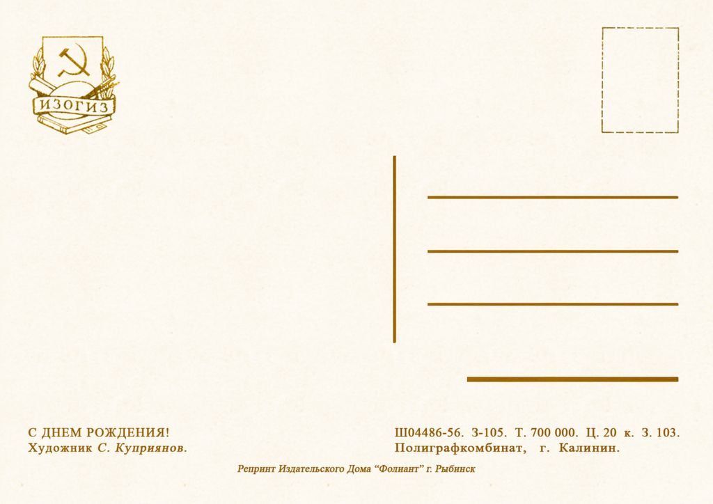7010 С Куприянов 1956 г 30 руб. В корзину Описание Комментарии 0 Описание 14,8 х 10,5 см Комментарии 0 Нет комментариев Добавить комментарий