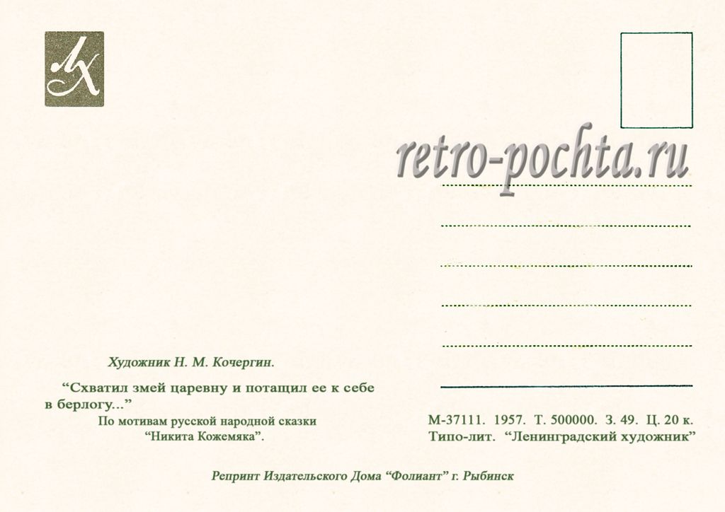 7211 Н Кочергин 1957 Никита Кожемяка 30 руб. В корзину Описание Комментарии 0 Описание Формат открытки 14,8 х 10,5 см Комментарии 0 Нет комментариев Добавить комментарий