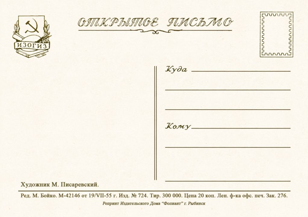 7322 М Писаревский 1955 1сентября 30 руб. В корзину Описание Комментарии 0 Описание Формат открытки 14,8 х 10,5 см Комментарии 0 Нет комментариев Добавить комментарий