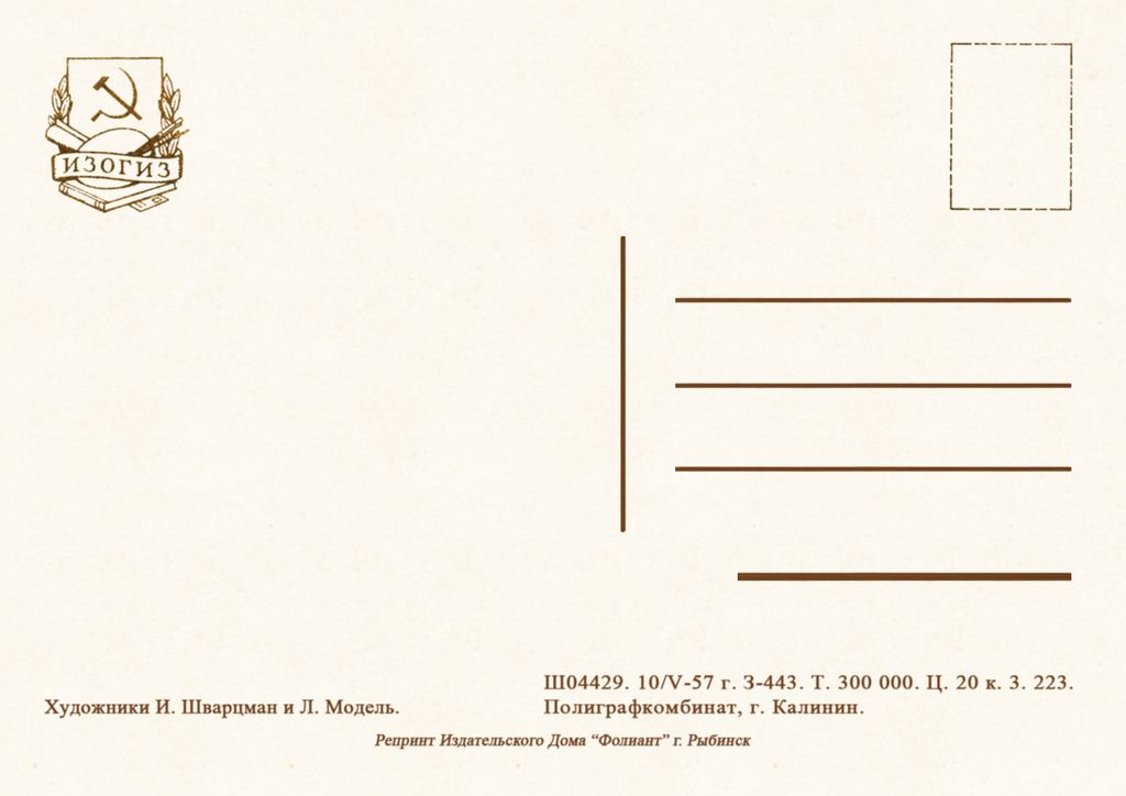7324 И Шварцман и Л Модель 1957 1сентября 30 руб. В корзину Описание Комментарии 0 Описание Формат открытки 14,8 х 10,5 см Комментарии 0 Нет комментариев Добавить комментарий