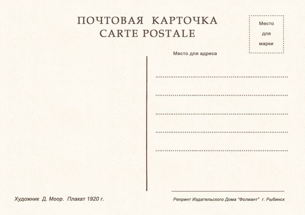 7407 Д Моор плакат 1920 г 30 руб. В корзину Описание Комментарии 0 Описание Формат открытки 14,8 х 10,5 см Комментарии 0 Нет комментариев Добавить комментарий