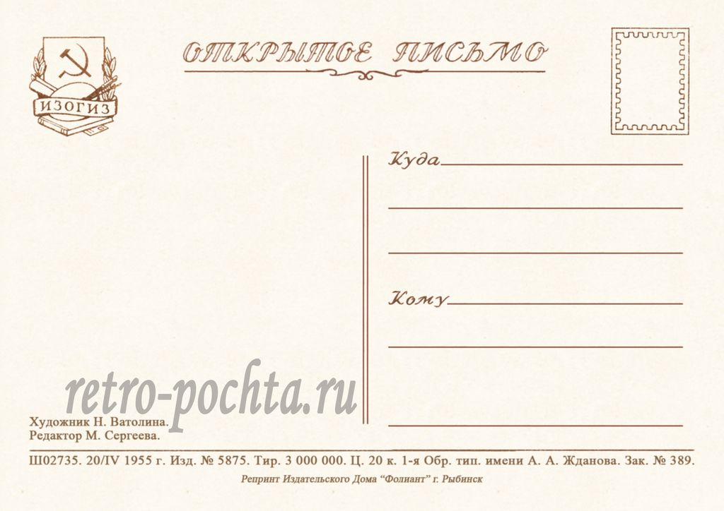 8006 Н Ватолина 1955 г 30 руб. В корзину Описание Комментарии 0 Описание Формат открытки 10,5 х 14,8 см Комментарии 0 Нет комментариев Добавить комментарий