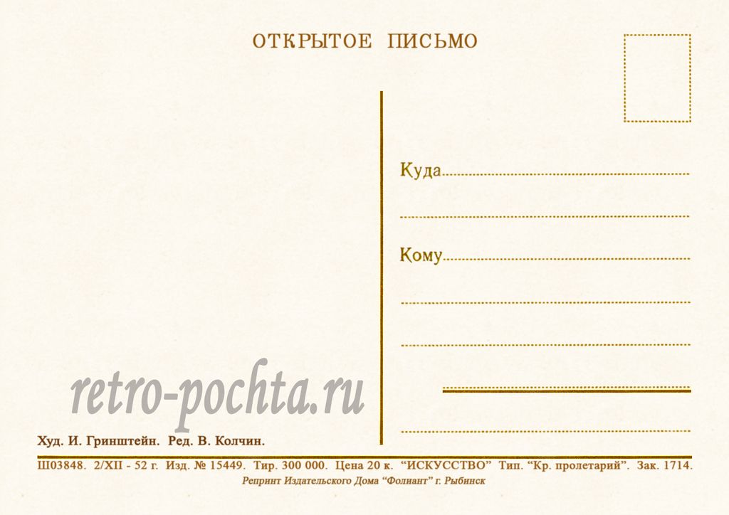 8013 И Гринштейн 1952 г 30 руб. В корзину Описание Комментарии 0 Описание Формат открытки 10,5 х 14,8 см Комментарии 0 Нет комментариев Добавить комментарий