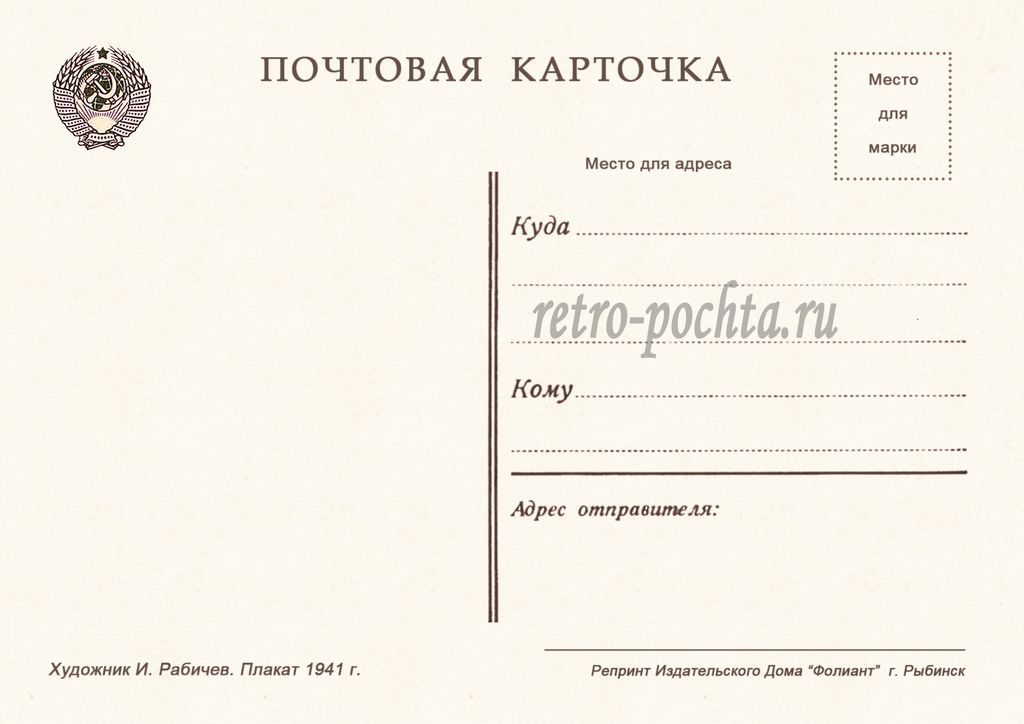 7518 И Рабичев плакат 1941 г 30 руб. В корзину Описание Комментарии 0 Описание Формат открытки 10,5 х 14,85 см Комментарии 0 Нет комментариев Добавить комментарий
