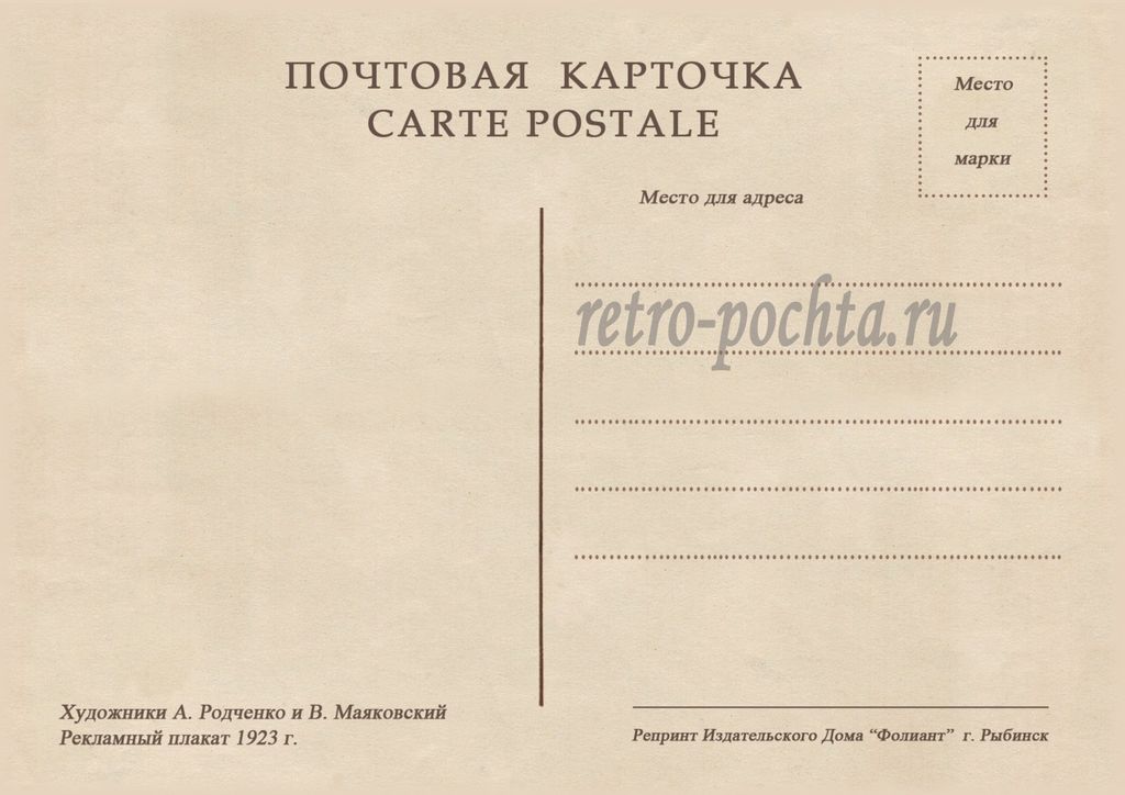 7703 А Родченко В Маяковский плакат 1923 г 30 руб. В корзину Описание Комментарии 0 Описание Формат открытки 10,5 х 14,8 см Комментарии 0 Нет комментариев Добавить комментарий