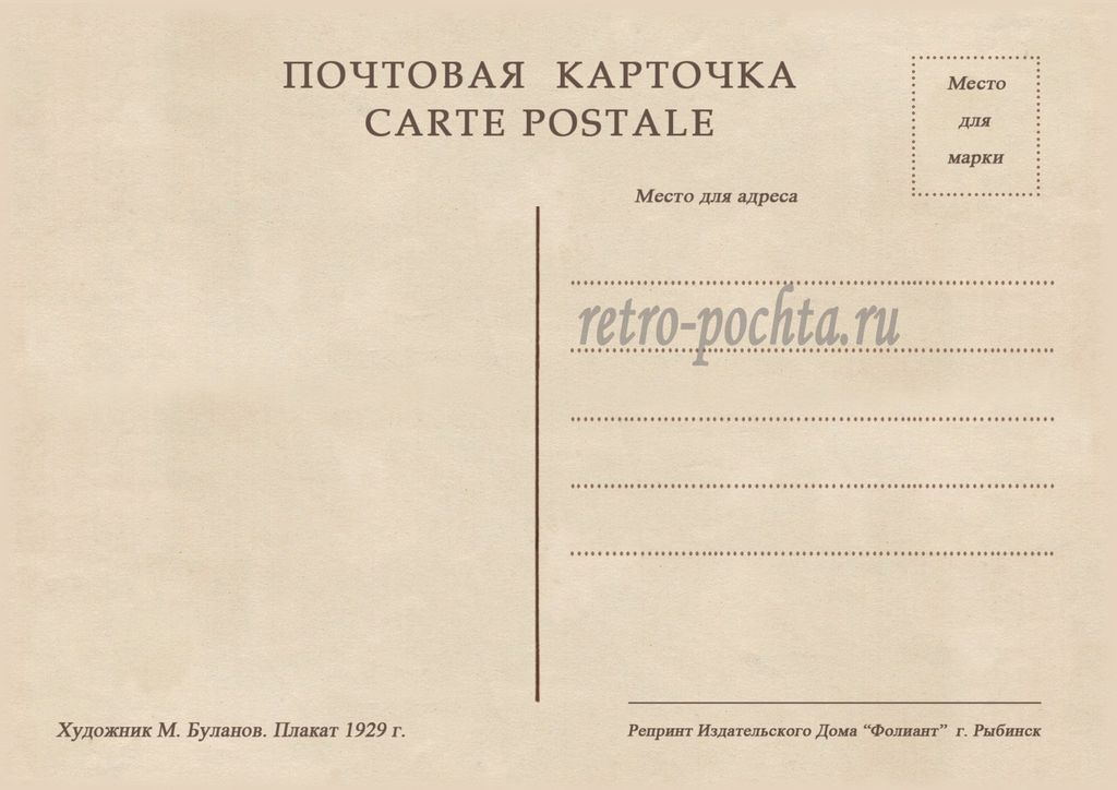 7723 М Буланов плакат 1929 г 30 руб. В корзину Описание Комментарии 0 Описание Формат открытки 14,8 х 10,5 см Комментарии 0 Нет комментариев Добавить комментарий