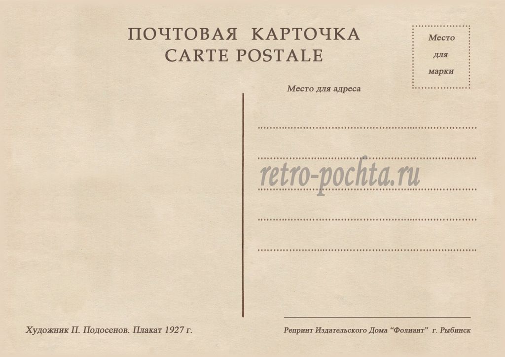 7725 П Подосенов плакат 1927 г 30 руб. В корзину Описание Комментарии 0 Описание Формат открытки 10,5 х 14,8 см Комментарии 0 Нет комментариев Добавить комментарий