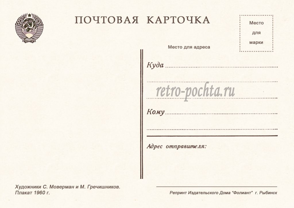 7759 С Моверман М Гречишников плакат 1960 г 30 руб. В корзину Описание Комментарии 0 Описание Формат открытки 10,5 х 14,8 см Комментарии 0 Нет комментариев Добавить комментарий