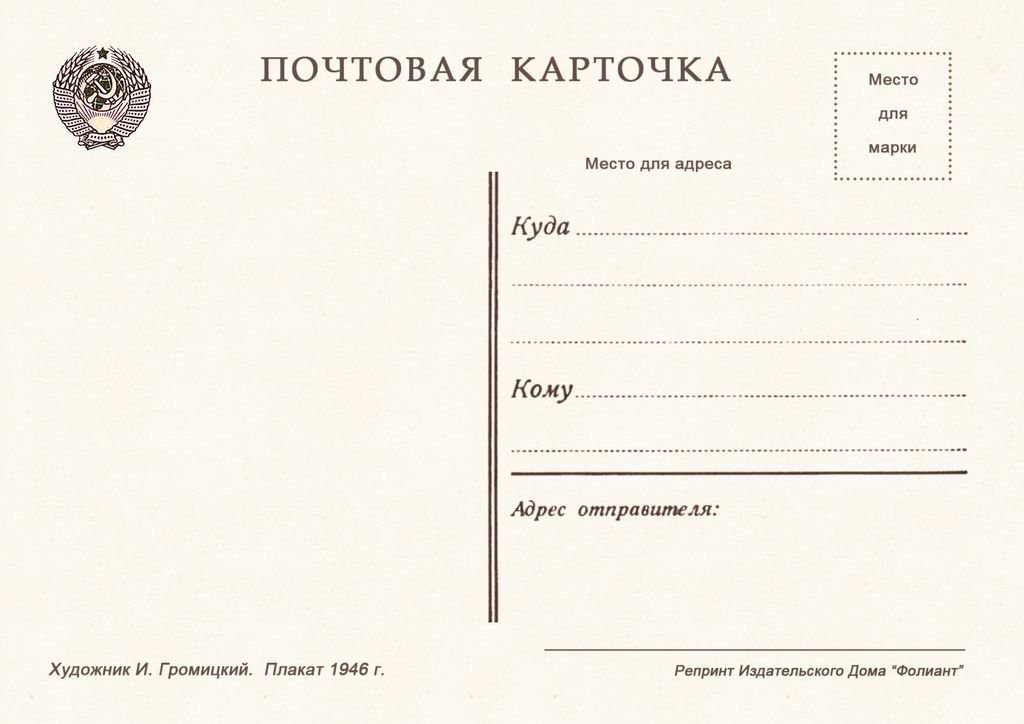 7614 И Громицкий плакат 1946 30 руб. В корзину Описание Комментарии 0 Описание Формат открытки 14,8 х 10,5 см Комментарии 0 Нет комментариев Добавить комментарий